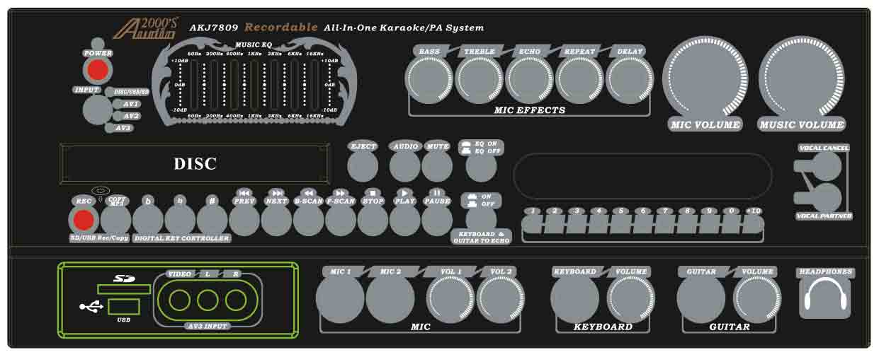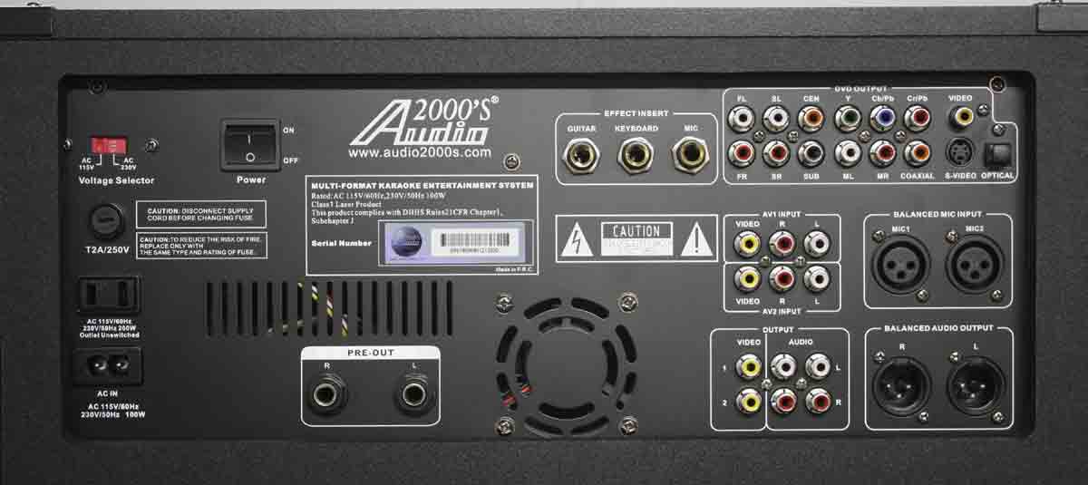 front panel and two balanced microphone inputs at the rear panel).