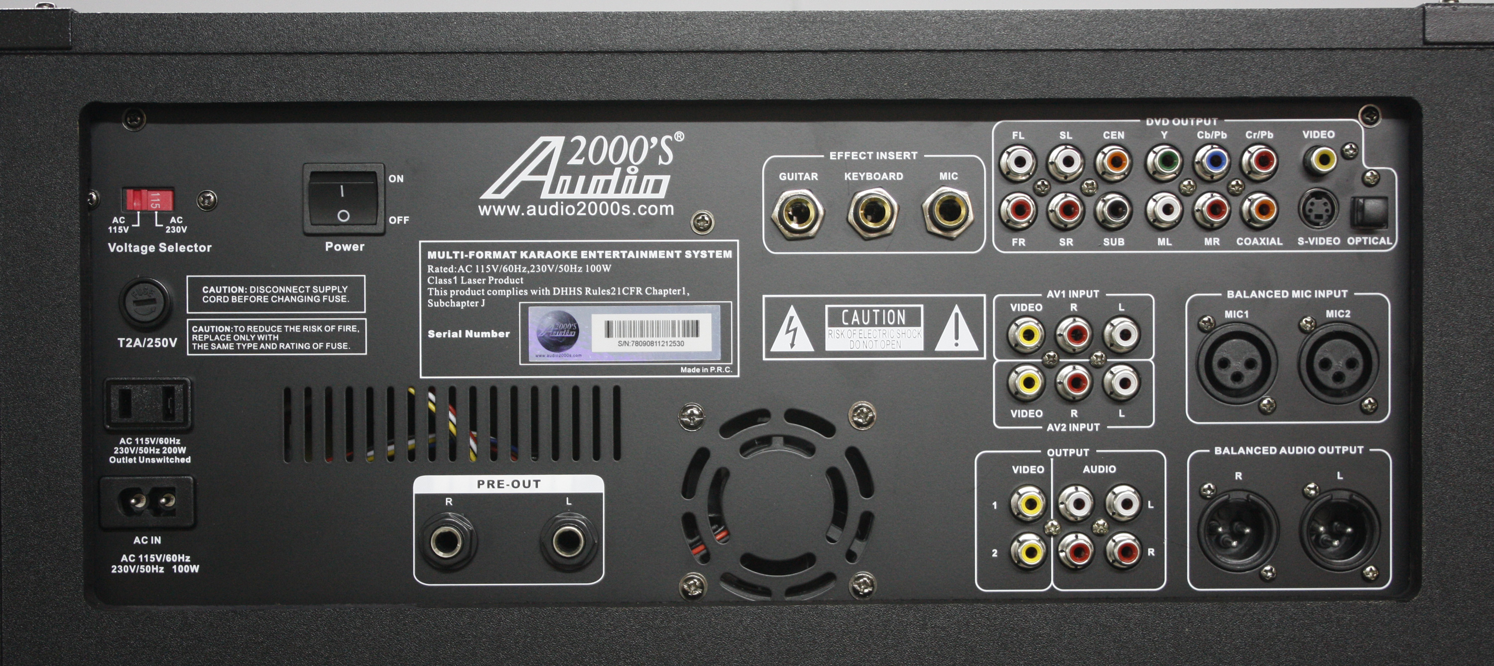 audio-video outputs, one stereo ¼-inch audio pre-out, and DVD 5.1
