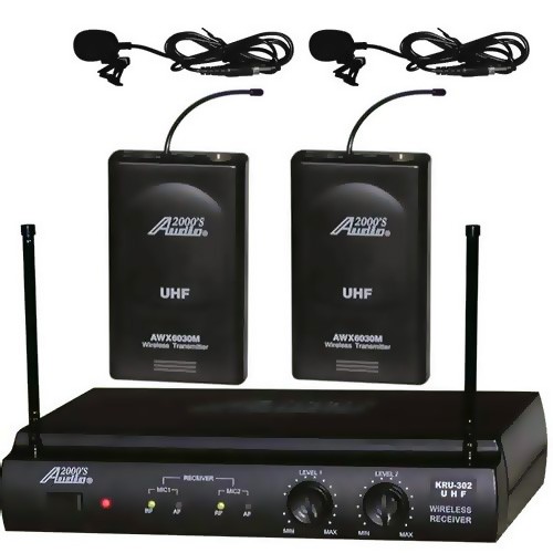 UHF Dual Channel Wireless Microphone System with Two Lavalier